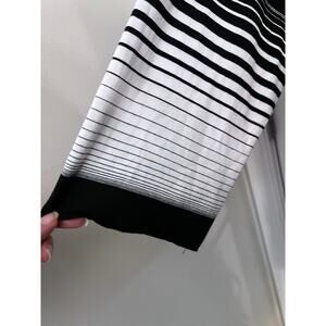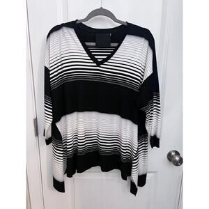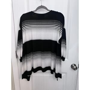 Blanque Women's Stripes Black & White Rayon Asymmetrical 1X Blouse Stretch USA
