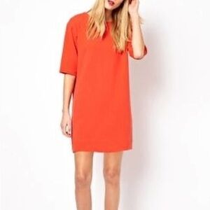 Blaque Label Shift Dress Bright Orange Medium Roll Tab Sleeves