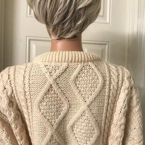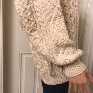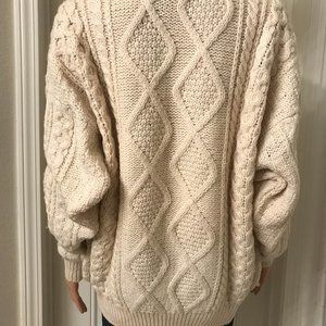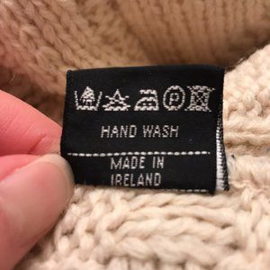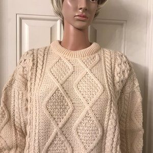 Blarney Wollen mills - made in Ireland. 100% wool. This is your slightly longer version of a sweater. It's your warm sweater and wear a thin top underneath - as it's a tad prickly. It's your warm Irish sweater bought in Ireland and well cared for. Please let me know if there are questions.