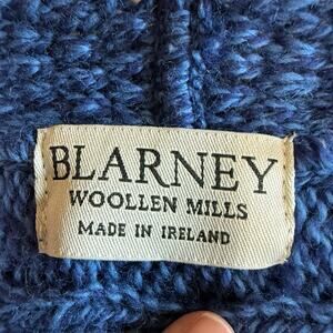 The Blarney Woolen Mills Cardigan Shawl Wrap in blue is a stylish and versatile piece perfect for travel or casual wear. Made of wool with a cable-knit design and fringe accents, this one-size sweater exudes a relaxed fit and classic bohemian style. Ideal for the winter, fall, or spring seasons, this sweater from the renowned Blarney Woolen Mills brand is a timeless addition to any hipster's wardrobe.