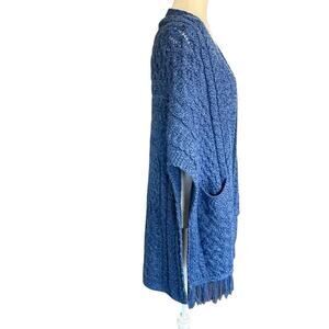 Blarney Woolen Mills Cardigan Shawl Wrap Wool Blue Fringe Ireland One Size