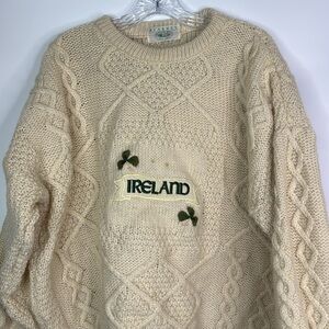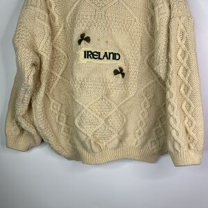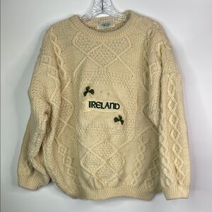 Blarney Woolen Mills Wool Ireland Clover Cable Knit Fisherman Ivory Sweater