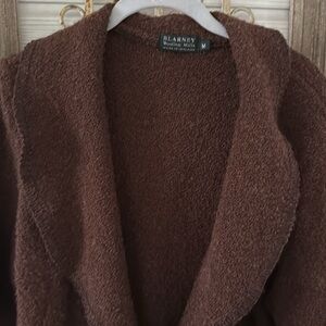 Blarney Woollen Mills Chocolate Brown Cascading Cardigan Gold Large Safety Pin. Beautiful! Cozy brown sweater from Blarney Woollen Mills. Made in Ireland. Wool alpaca blend. Chocolate brown with deeper brown stitched accents. Large gold safety pin. I’m not sure if that came with it or not - it could be used to close it - or just take it off :). Size Medium. Excellent preloved condition with minimal signs of wear.
