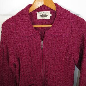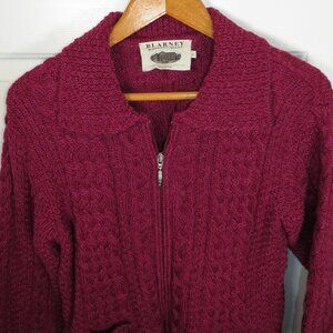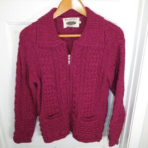 Blarney Woollen Mills Women’s Medium Sweater Full Zip Cable Knit Merino Wool