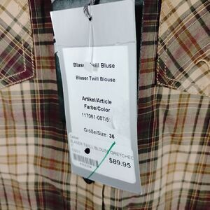 Blaser Twill Blouse Button Front Shirt Tan Purple Plaid Checks. Condition is New with tags. Shipped with USPS