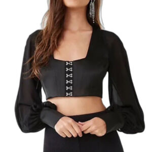 Blashe Black Hook and Eye with Chiffon Long Sleeves Crop Top Size S