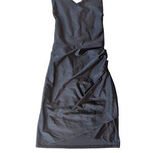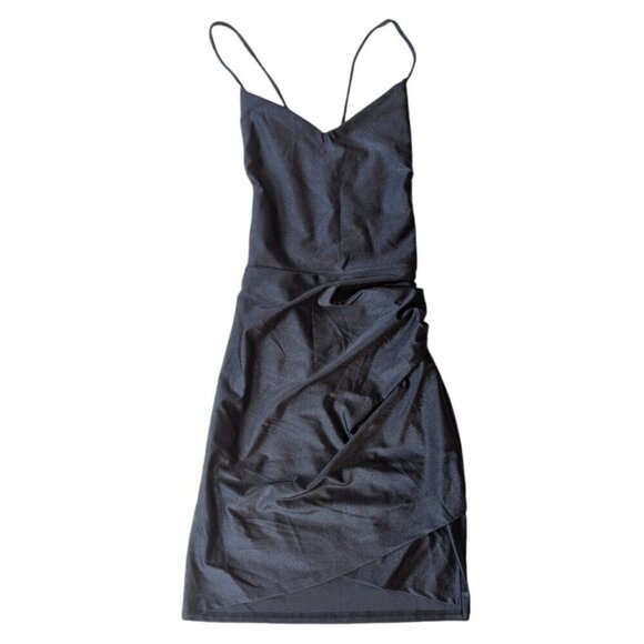 Blashe women's black satin strappy mini dress with a draped design and stretch fabric, suitable for cocktail parties.