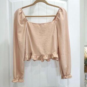Blashe Tan Womans Ruffle Smocked Puff Sleeve Crop Top Size Large, Perfect condition, Actual Measurements are