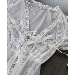 Blashe White Lace Kimono Swim Coverup Size S Tie Closure Bohemian Festival