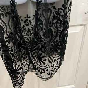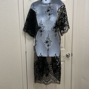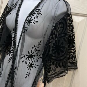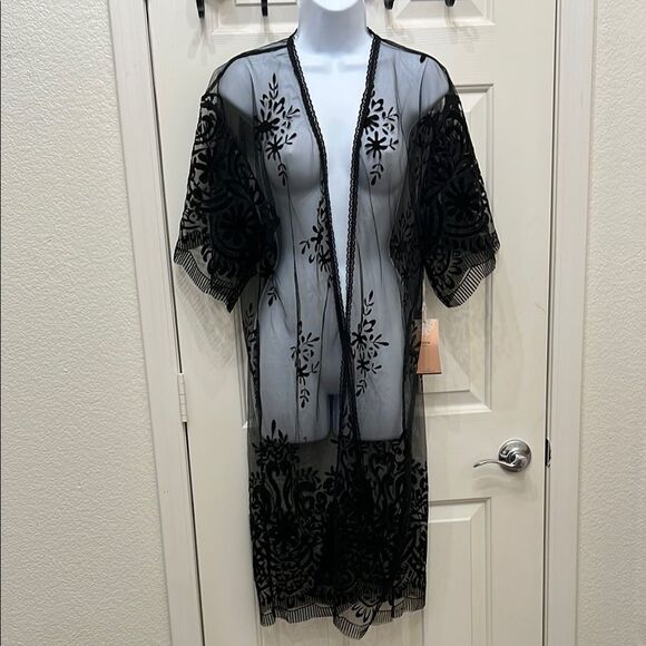 Blasphemy Black Sheer Lace Poolside Robe Kimono Sleeves Open Front Sheer Lace