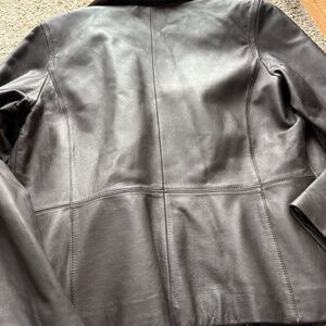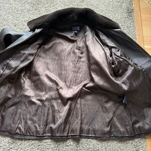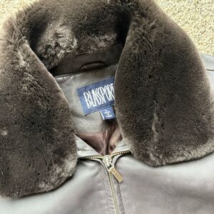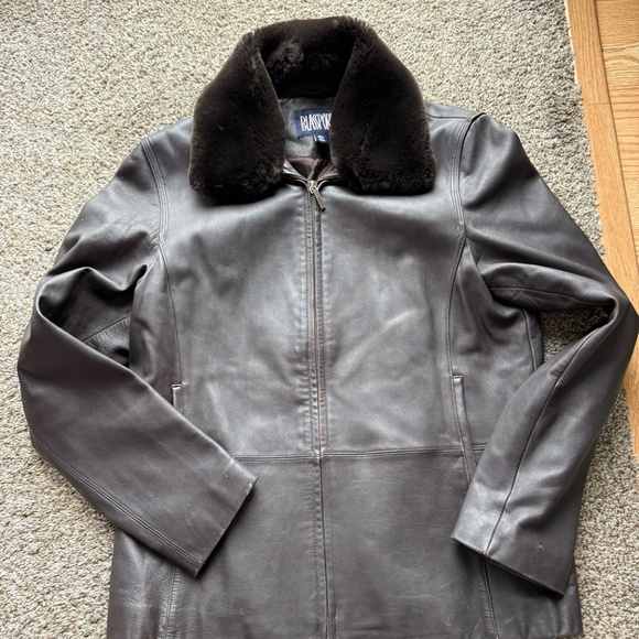 Blassport Womens Dark Brown Leather Jacket With Faux Fur Collar