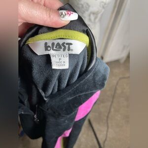 Blast Velour Hoodie Sweater Full Zip Y2K Black Colorful Vintage Small Petite