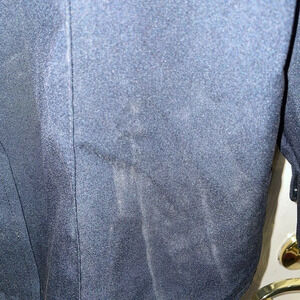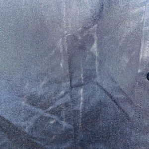 Looks like someone stepped on the shirt near the bottom. Some staining I’ve tried to capture in pics. Looks easy to clean but I honestly have no idea. But please notice it’s there