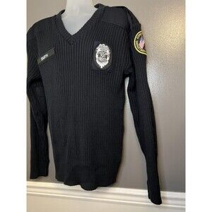 Blauer Duty Sweater Mens 2XL Dark Navy V Neck Rib Knit Shoulder Patch CT DOC