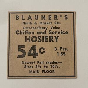 Blauner's Chiffon & Service Hosiery 54c 1934 Philadelphia Clipping SAI5-S12