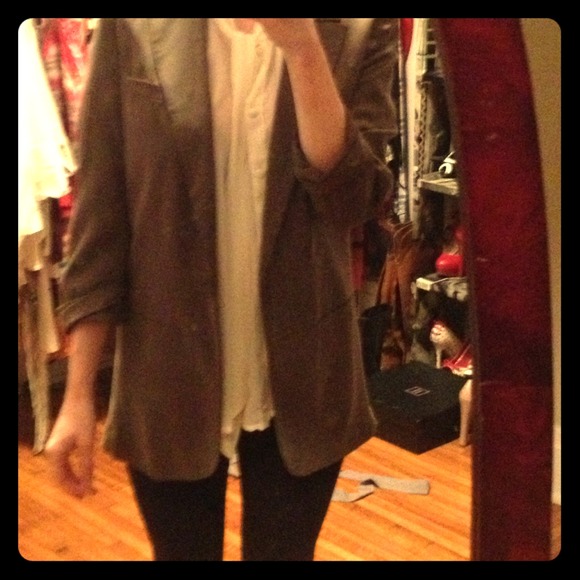 Army green blazer 3/4 length arms fabulous piece to throw on over a blouse or tank