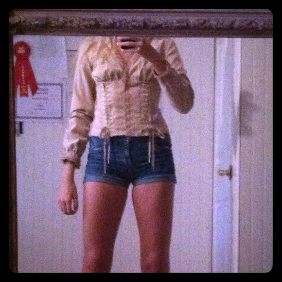 Suede-like fabric with lacing and buttons down the front. Very comfortable