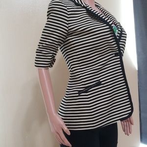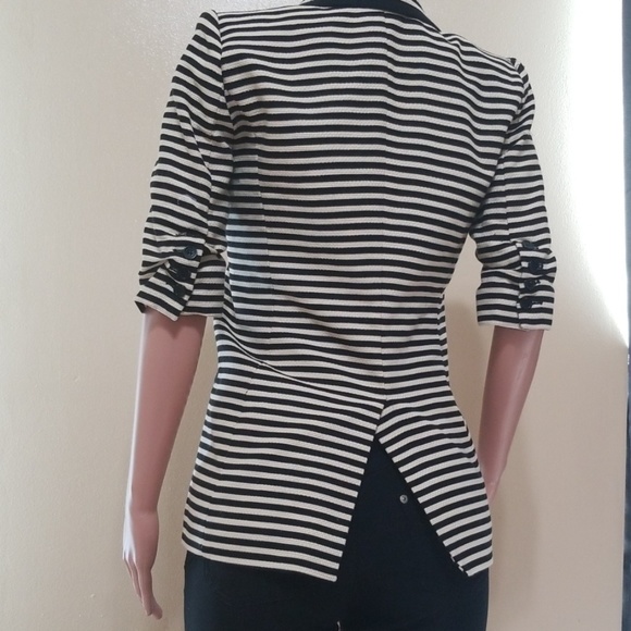 Brand new jacket, tags still attached! Only tried on! Structured fit, stops at the elbows with cinched buttons. One button closure. Faux pockets in front, hidden pocket inside, pocket square on the outside.