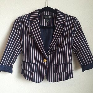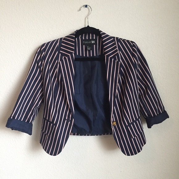 Pink and navy blue striped blazer, 3/4 sleeve. Size small. Flatters the figure perfectly! No flaws, 10/10 condition. Never worn.