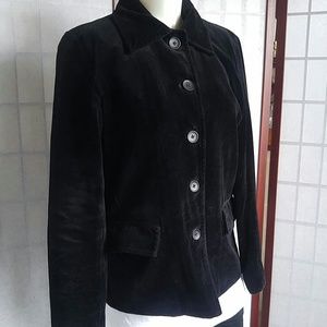 Blazer...5 buttons down front, side flap covered pockets, shell 100% Cotton, lining 51% nylon, 49% acetate