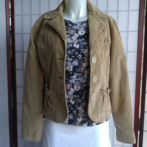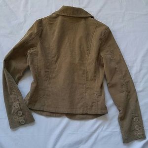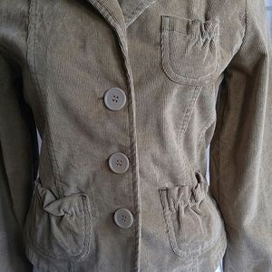 Blazer, soft corduroy blazer, button down front, left chest pocket, 2 side pockets, triple button wrist closure, 53% Cotton, 44% polyester, 3% spandex
