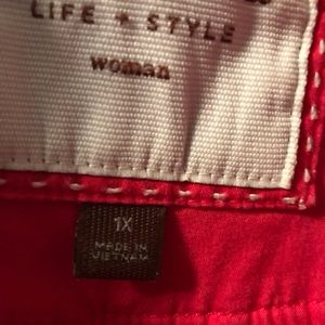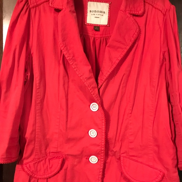 Red cotton, unlined jacket. 3/4 length sleeves. Smoke free and pet free home.