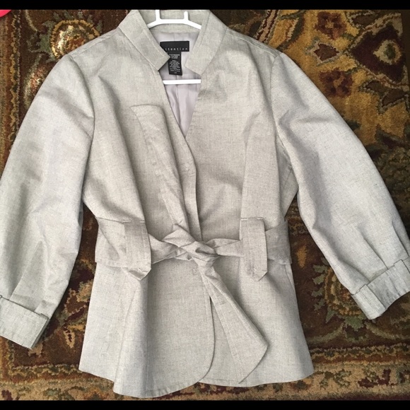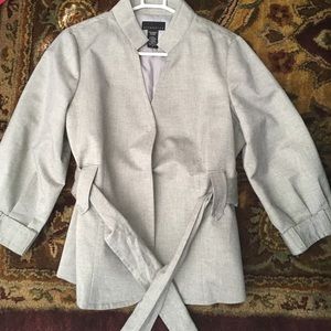 Classy unique designed blazer with tie belt . This jacket/blazer can be wore with jeans and heels or to business it up a nice skirt. Tons of compliments the limited times it was wore.