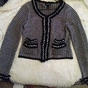 Pearls on collar & on end of sleeves also down the blazer & pockets