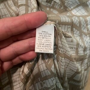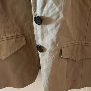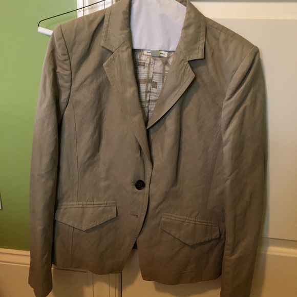 Like new light weight khaki blazer made by Banana Republic. 58% cotton, 36% nylon, 6%metallic. Looks great with black pants and heels or jeans and boots. Very versatile blazer!