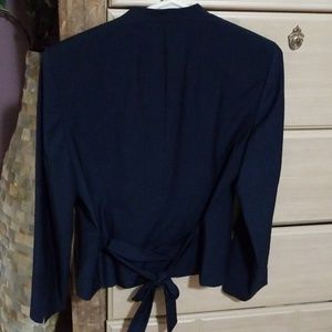 Tie in front or in back striped blazer. Stripes are very thin and can be seen in the close up of the tag pic.