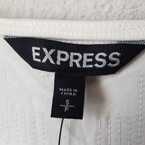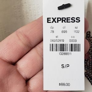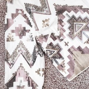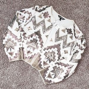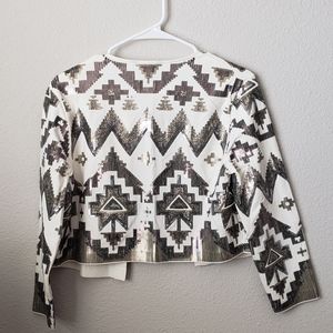 White/Cream Blazer Jacket from Express! It has super fun sequins detail on geometric patterns! Perfect for a date night or girl's night out! It is more like a cropped blazer and hits right around the waist! Size S! Never Worn. NWT!