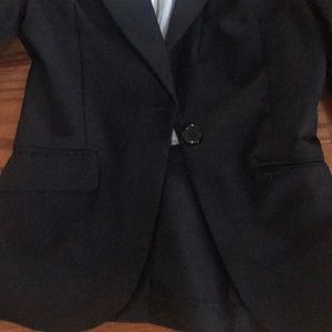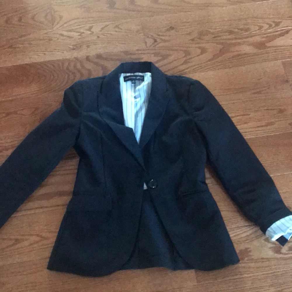 Ambiance apparel black blazer with liner that can be shown off when sleeve is rolled up. Front pockets and back slit. No defects. Size small.