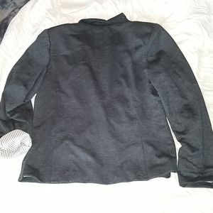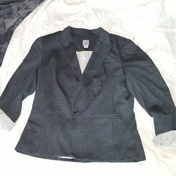 Grey blazer with striped lining. Sleeves can be styled rolled or down. Should pass for more shape.