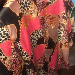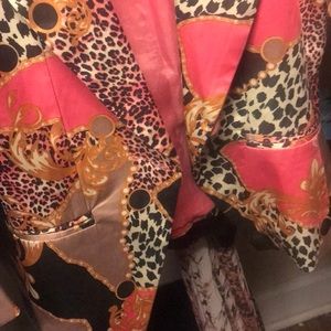 Pink, gold and black blazer with one button. Gently used but still in good condition