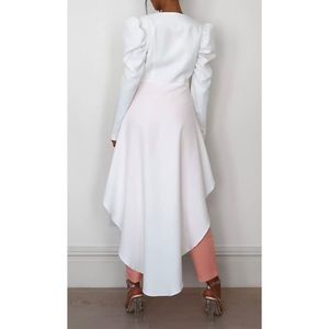 White Co Ord Waterfall Hem Puff Sleeve Blazer