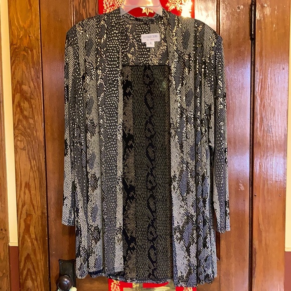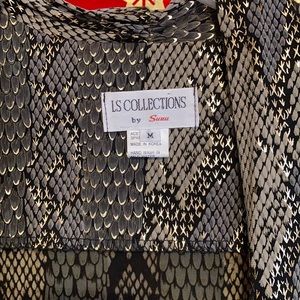 Snake skin material blazer spandex lite very lightweight no buttons.