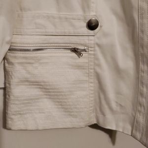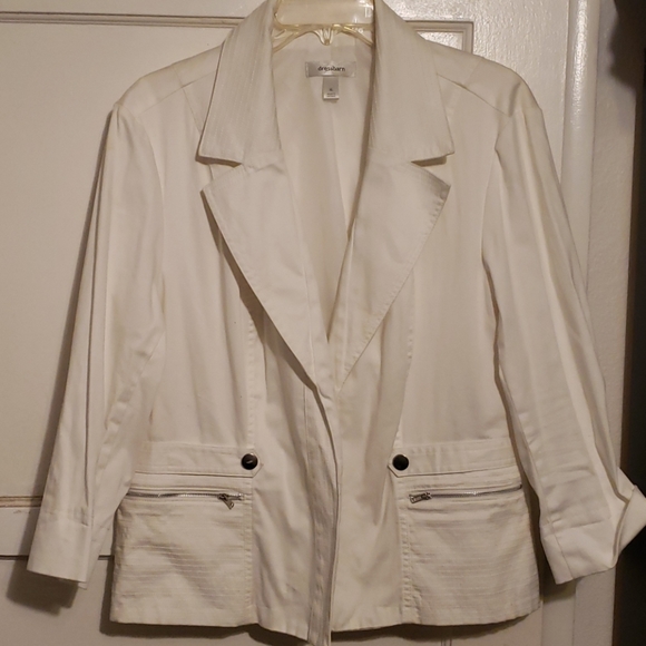 White blazer with silver accents.