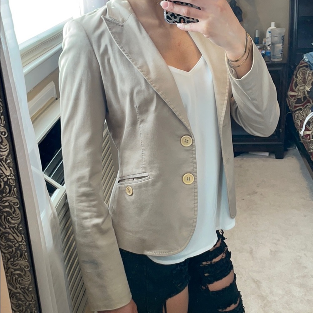 Tan women’s blazer.