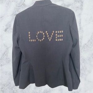 Excellent condition blue one button blazer with LOVE in studs on the back. 100% poly blend size S