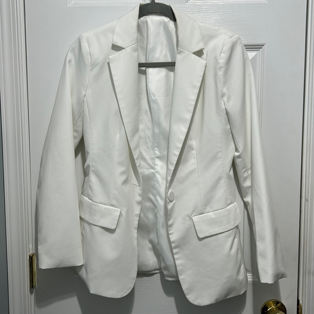 @staycihh no stains. I only wore it twice, so it’s still in really good condition. I’d say it’s supposed to be fitted, but it’s a little bit big on me, so it’s sorta oversized but not purposefully. And it’s a bright white, my lighting is not the best lol