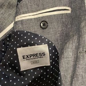 Two buttons and pockets, 4 buttons at the side sleeve, 2 pictures inside.