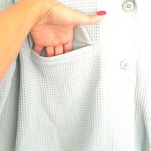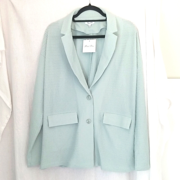 Lightweight waffle knit blazer. NWT says size small but fits more like XL size L if you want oversized. Pockets are functional.