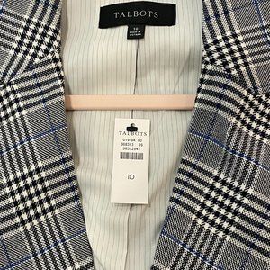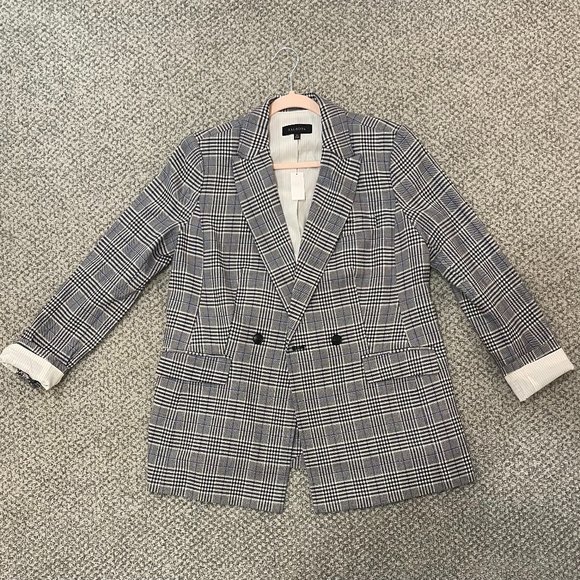 Brand new blue, grey, black and white blazer. Pristine quality and great for work. Size Large.