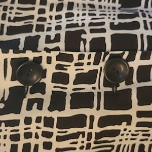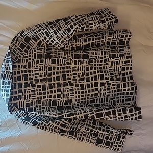 Lightweight dark brown and white print blazer....large buttons on front...never been worn....cotton/spandex blend.