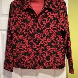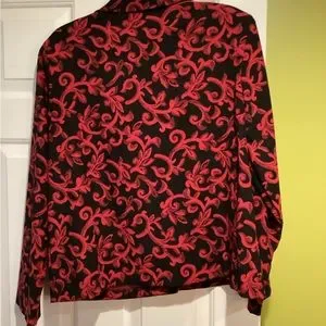 Button down blazer jacket. 97% polyester, 3% spandex has shoulder pads. Measurements: 22” pit to pit.