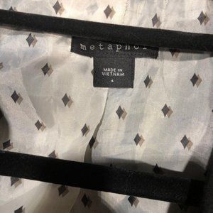 Blazer black size 4. This is a NWOT. Unfortunately the lining is damaged and must be resewn. Other this it’s in excellent condition. Very cute.