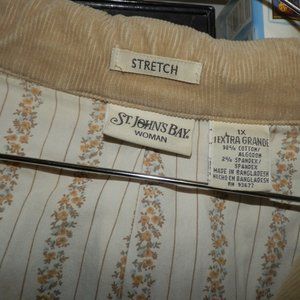Gold Corduroy Blazer. Has princess seaming (front and back). Half lined. 3 button front, Slash pockets and button cuff sleeves. Is seamed at waist front and back. Fitted through the back with waist yoke. Especially good for someone who is shortwaisted.