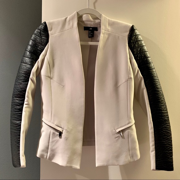 Chic blazer / jacket cream with faux black leather details. Lovely cut.