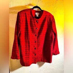 Blazer/ Jacket by Alfred Dunner Woman- red w black metallic check. Gorgeous red