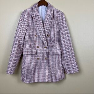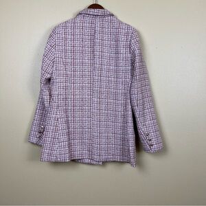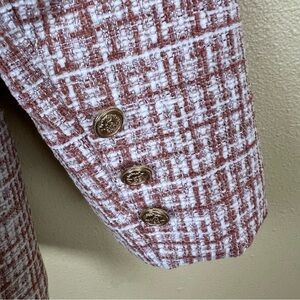 Blazer Plaid Double Breasted Tweed Gold Buttons Red Large